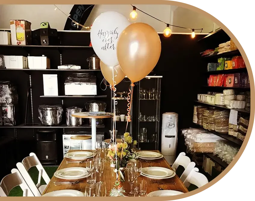 • The chance to visit our shed to see and touch items like cutlery, linen, and chairs before you hire.